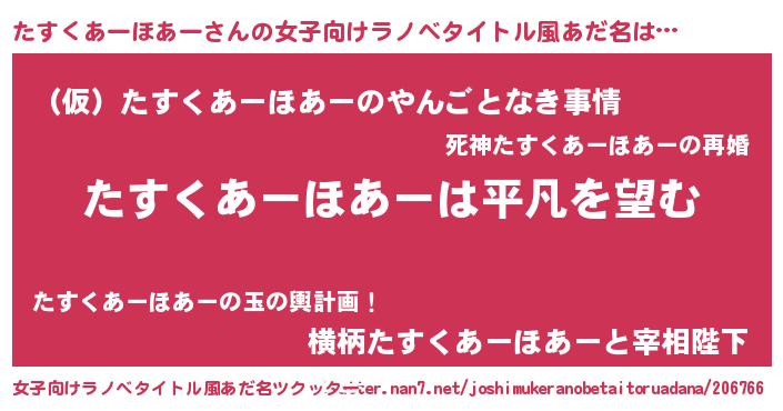 | 胡散臭い通販商品みたいなあだ名 | 『信頼と実績のペンダント…その名も「たすくあーほあー」』 |