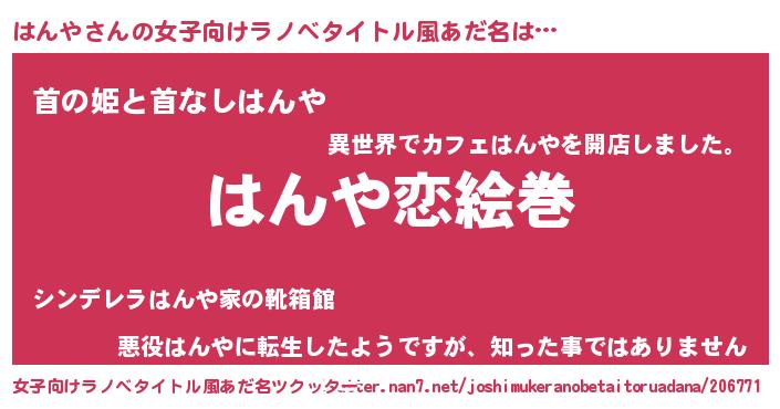 | 男性向けラノベタイトル風あだ名 | 『ノーゲーム・ノーハンヤ』 |