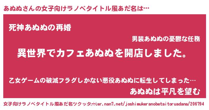 | 胡散臭い通販商品みたいなあだ名 | 『前代未聞の健康食品…その名も「あぬぬ」』 |