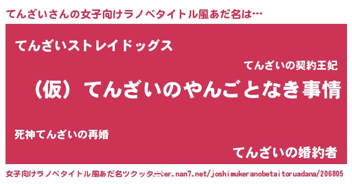 | 男性向けラノベタイトル風あだ名 | 『てんざいの憂鬱』 |