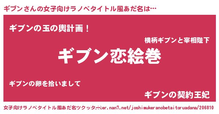 | 男性向けラノベタイトル風あだ名 | 『おまえをオタクにしてやるから、俺をギブンにしてくれ! 』 |