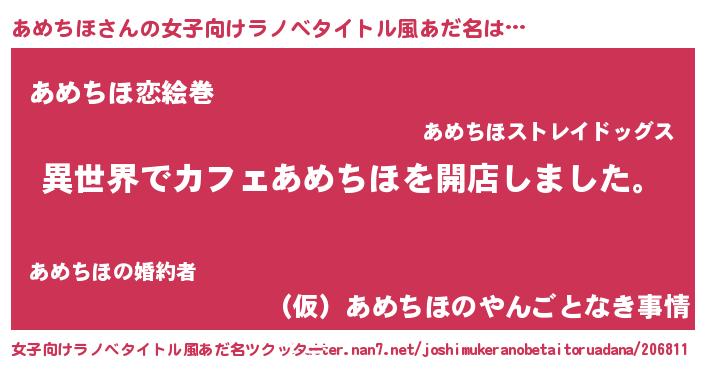 | 男性向けラノベタイトル風あだ名 | 『誰もが恐れるあのあめちほが、ぼくの専属メイドになるようです。』 |