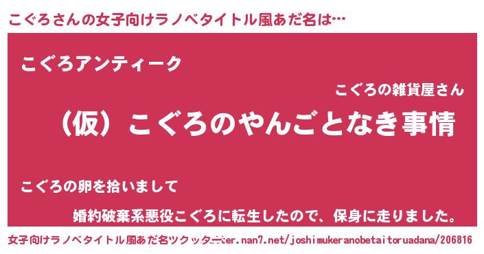 胡散臭い通販商品みたいなあだ名 | 『必ず成功するブレスレット…その名も「こぐろ」』 |
