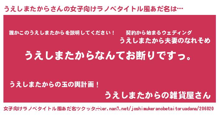 男性向けラノベタイトル風あだ名 | 『魔法科高校のうえしまたから』 |