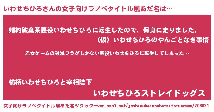 意味不明あだ名 | 『住所不定無職いわせちひろ(74歳)』 |