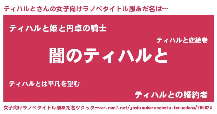 男性向けラノベタイトル風あだ名 | 『Re:ティハルとから始める異世界生活』 |