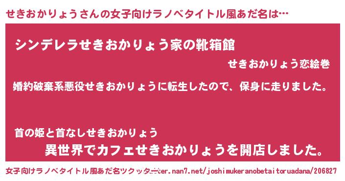 男性向けラノベタイトル風あだ名 | 『セキオカリョウスレイヤー』 |