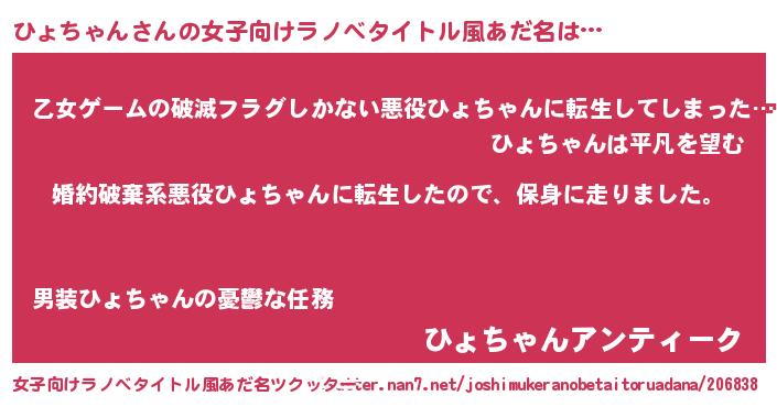 | 男性向けラノベタイトル風あだ名 | 『ヒョチャンスレイヤー』 |
