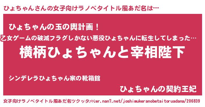 | ヘコむあだ名 | 『ひょちゃん(苦笑)』『ひょにー』 |