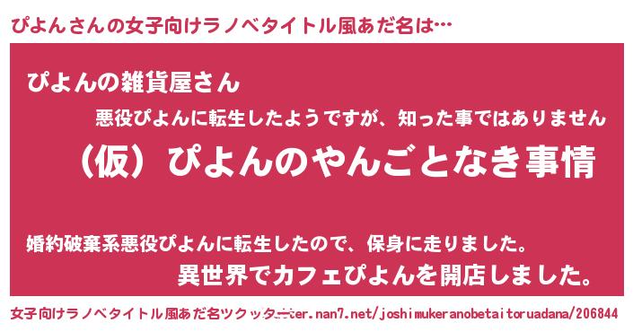 | 胡散臭い通販商品みたいなあだ名 | 『必ず成功するブレスレット…その名も「ぴよん」』 |