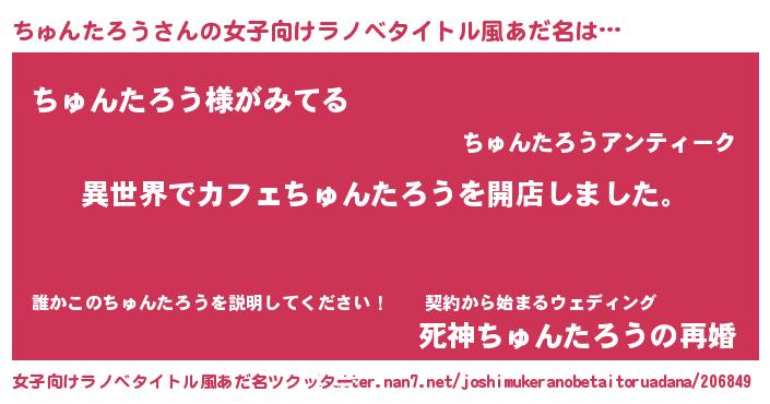 男性向けラノベタイトル風あだ名 | 『誰もが恐れるあのちゅんたろうが、ぼくの専属メイドになるようです。』 |