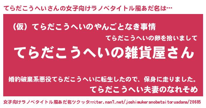 | 男性向けラノベタイトル風あだ名 | 『やはりてらだこうへいの青春ラブコメはまちがっている 』 |