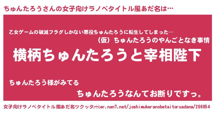 男性向けラノベタイトル風あだ名 | 『ちゅんたろうに滅ぼされるだけの簡単なお仕事です』 |