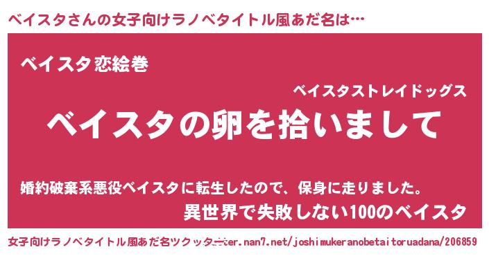 男性向けラノベタイトル風あだ名 | 『ベイスタの嫁は女の子じゃないと思った?』 |
