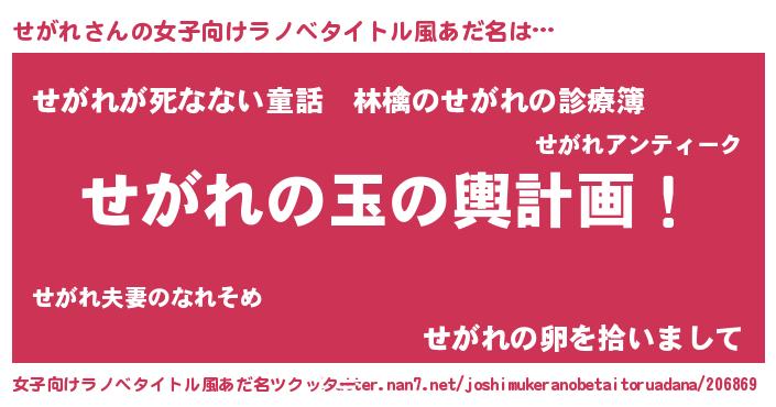 ヘコむあだ名 | 『せがっ子』『せがにゅー』『豆乳』 |