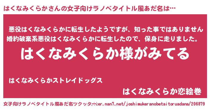 男性向けラノベタイトル風あだ名 | 『はくなみくらかの嫁は女の子じゃないと思った?』 |