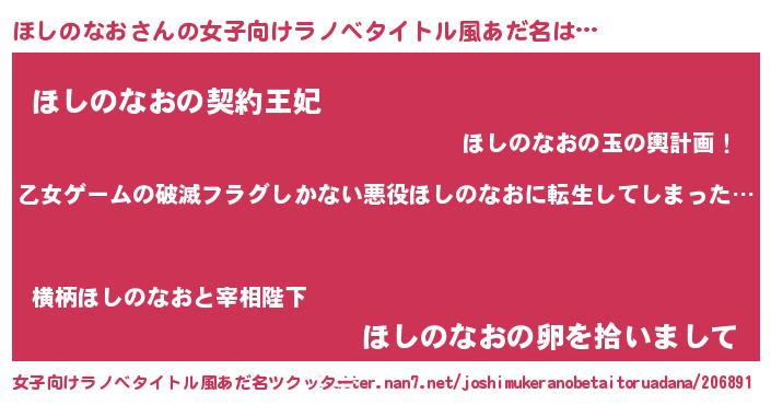 男性向けラノベタイトル風あだ名 | 『この素晴らしい世界にほしのなおを!』 |