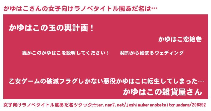 男性向けラノベタイトル風あだ名 | 『カユハコアートオンライン』 |