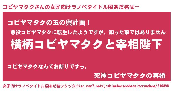 | 男性向けラノベタイトル風あだ名 | 『コビヤマタクに滅ぼされるだけの簡単なお仕事です』 |