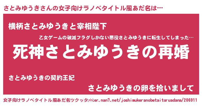 | 男性向けラノベタイトル風あだ名 | 『ノーゲーム・ノーサトミユウキ』 |
