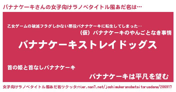 | 男性向けラノベタイトル風あだ名 | 『Re:バナナケーキから始める異世界生活』 |