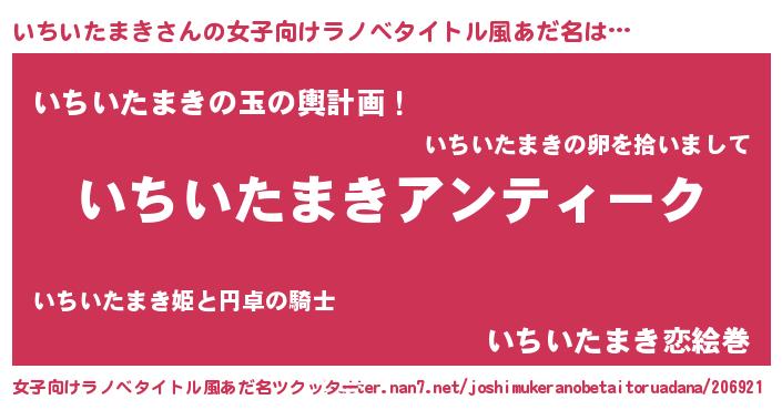 | 意味不明あだ名 | 『自称いちいたまき』 |