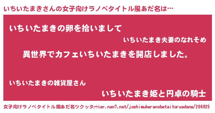 | 男性向けラノベタイトル風あだ名 | 『誰もが恐れるあのいちいたまきが、ぼくの専属メイドになるようです。』 |