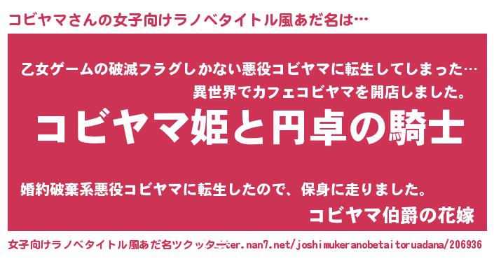 男性向けラノベタイトル風あだ名 | 『コビヤマアートオンライン』 |