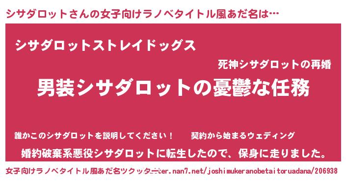 男性向けラノベタイトル風あだ名 | 『うちのシサダロットが世界を掌握している!』 |