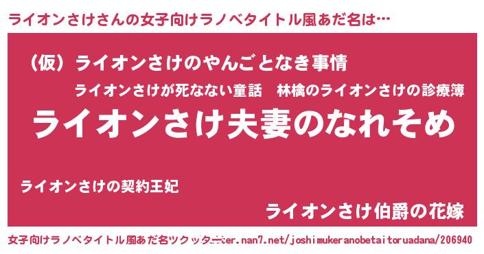 料理風あだ名 | 『ライオンさけのトマト煮』 |