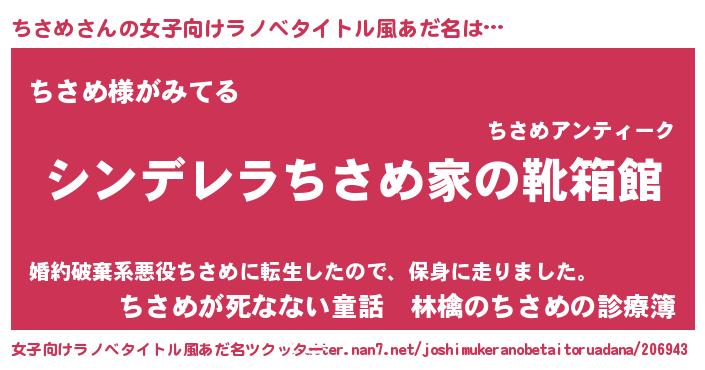 男性向けラノベタイトル風あだ名 | 『緋弾のチサメ』『魔弾の王とちさめ』 |