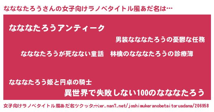 意味不明あだ名 | 『住所不定無職なななたろう(12歳)』 |