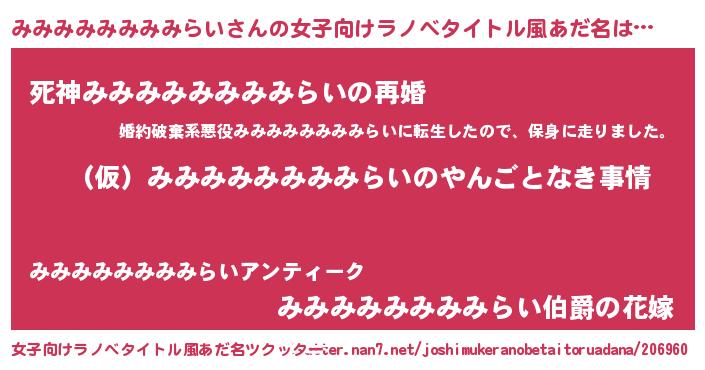 胡散臭い通販商品みたいなあだ名 | 『必ず成功するブレスレット…その名も「みみみみみみみみらい」』 |