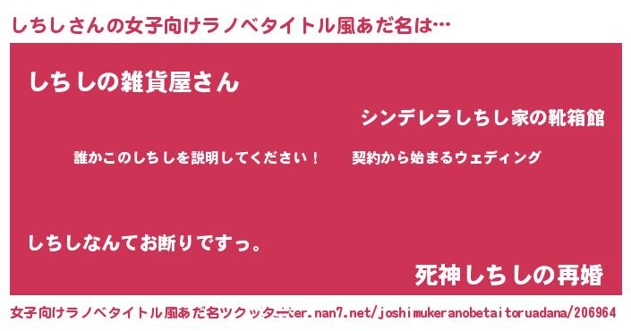 | 胡散臭い通販商品みたいなあだ名 | 『億万長者になれる霊験あらたかなお札…その名も「しちし」』 |