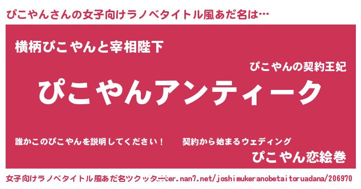 | 意味不明あだ名 | 『自称ぴこやん』『永久保存ぴこやん』 |