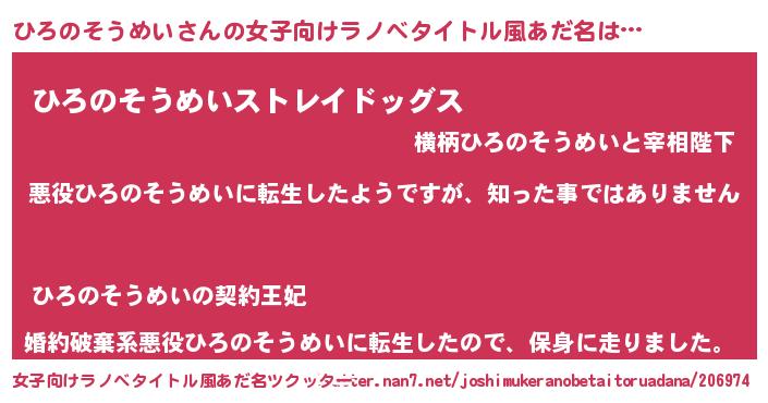 | 男性向けラノベタイトル風あだ名 | 『この素晴らしい世界にひろのそうめいを!』 |