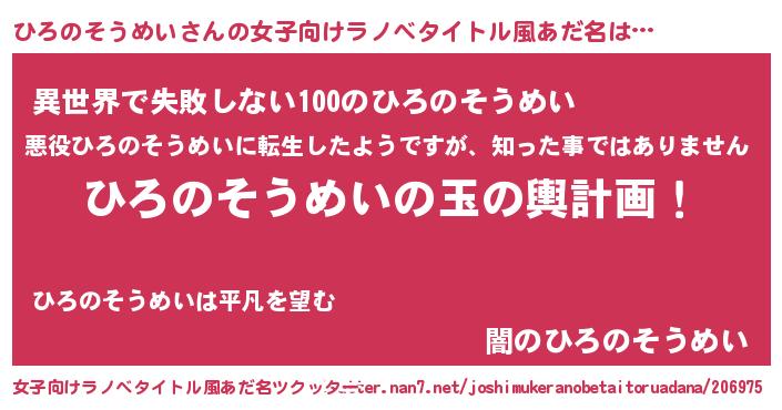 | 男性向けラノベタイトル風あだ名 | 『転生したらひろのそうめいだった件』 |