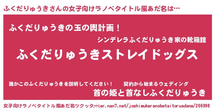 | 男性向けラノベタイトル風あだ名 | 『Re:ふくだりゅうきから始める異世界生活』 |