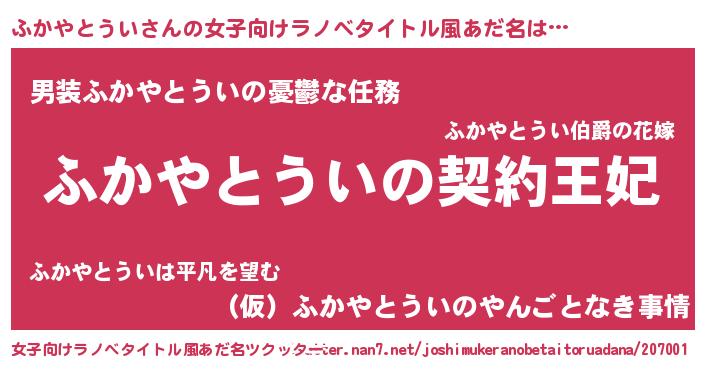 | 意味不明あだ名 | 『永久保存ふかやとうい』 |