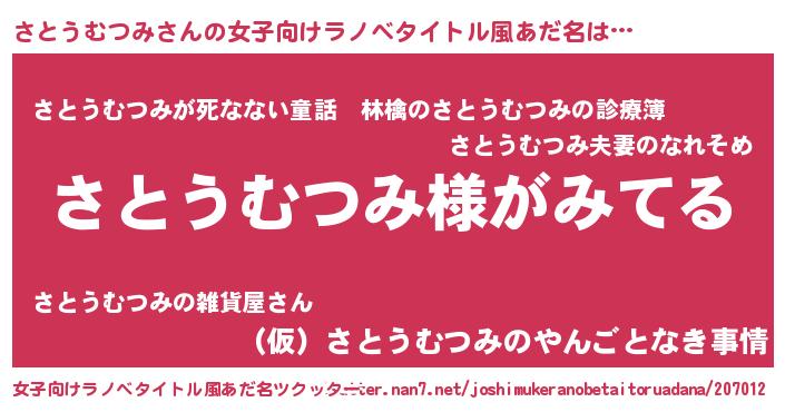 | 意味不明あだ名 | 『とにかく怪しいさとうむつみ』 |