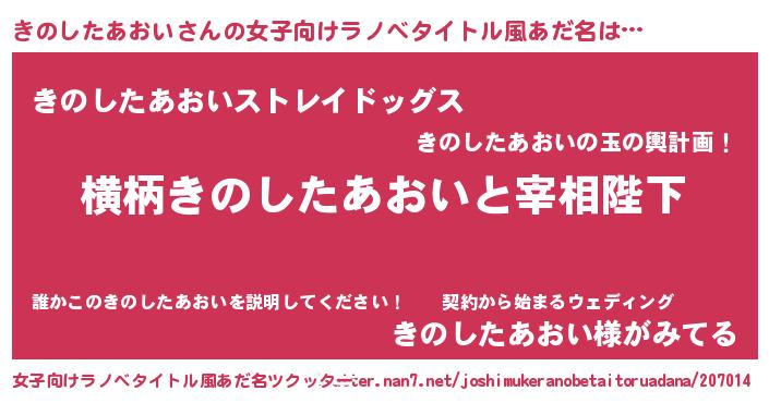 男性向けラノベタイトル風あだ名 | 『きのしたあおいに滅ぼされるだけの簡単なお仕事です』 |
