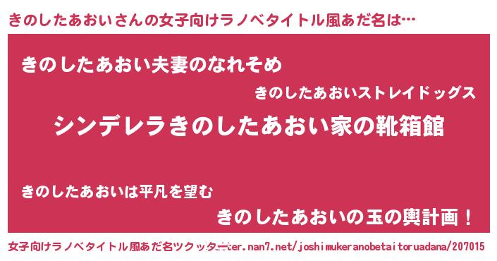 ヘコむあだ名 | 『きの太郎』『きのしたあおい(笑)』 |