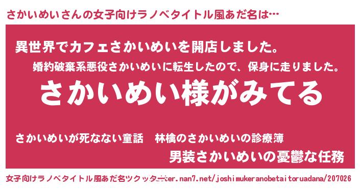ヘコむあだ名 | 『さか太郎』『さかいめい(苦笑)』 |
