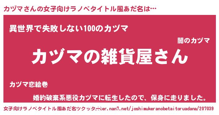 男性向けラノベタイトル風あだ名 | 『やはりカヅマの青春ラブコメはまちがっている 』 |