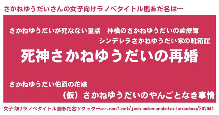 男性向けラノベタイトル風あだ名 | 『ノーゲーム・ノーサカネユウダイ』 |