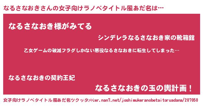 男性向けラノベタイトル風あだ名 | 『この素晴らしい世界になるさなおきを!』 |