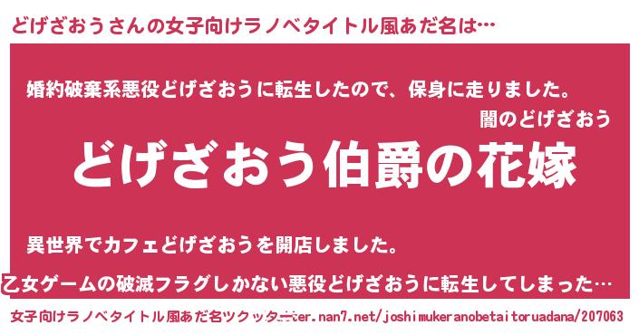 | ヒーロー風カッコイイあだ名 | 『ウルトラどげざおうマン』 |