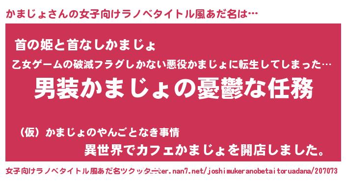 男性向けラノベタイトル風あだ名 | 『うちのかまじょが世界を掌握している!』 |
