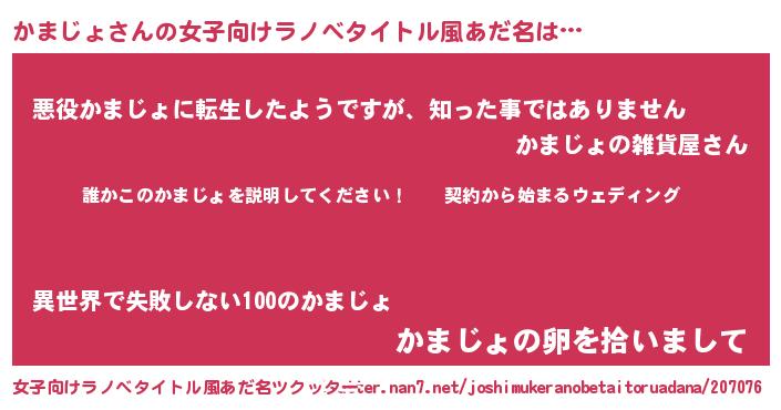 | 胡散臭い通販商品みたいなあだ名 | 『億万長者になれる水晶球…その名も「かまじょ」』 |