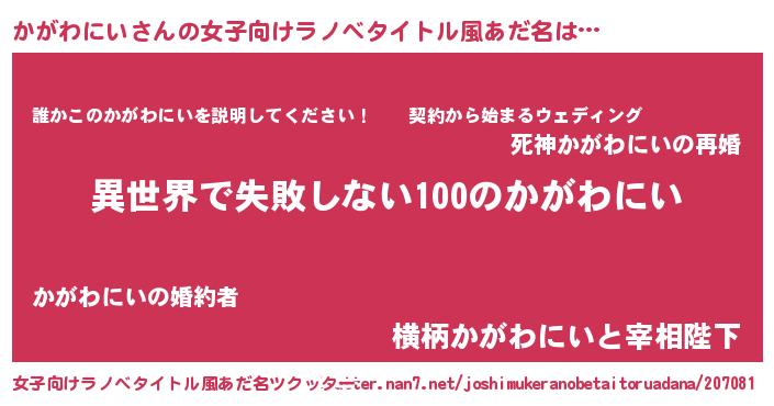 ヘコむあだ名 | 『かがわにい(爆)』『かがにゅー』 |